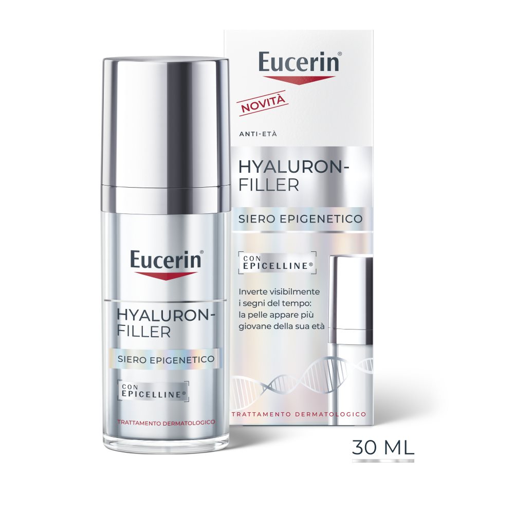 Eucerin Hyaluron-Filler Siero Epigenetico è stato specificamente formulato per invertire visibilmente i segni del tempo e rallentare l'invecchiamento. È la scelta perfetta per chi è alla ricerca di un siero anti-age non irritante, ma altamente efficace, in grado di agire sulle rughe e sulle linee sottili, facendo apparire la pelle più giovane della sua età.