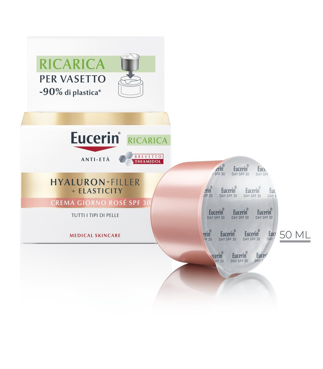 Il formato ricaricaè realizzato con il 90% di plastica in meno rispetto alla confezione standard. Scegliendo questa ricarica, puoi contribuire alla riduzione dei rifiuti di plastica e a un ciclo di consumo più sostenibile. Compatibile con tutti i vasi standard delle creme viso Eucerin.