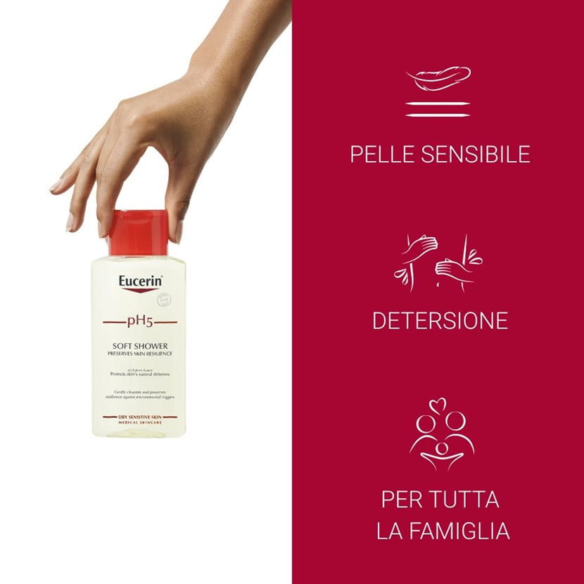 Proteggi e idrata la tua pelle con Eucerin pH5 Gel Doccia Dermoprotettivo per un nuovo benessere sulla pelle. La pelle sensibile ha bisogno di una detersione delicata per resistere agli stress quotidiani. pH5 Gel Doccia Dermoprotettivo con Dexpantenolo deterge delicatamente la pelle sensibile e rispetta il microbiomta cutaneo.