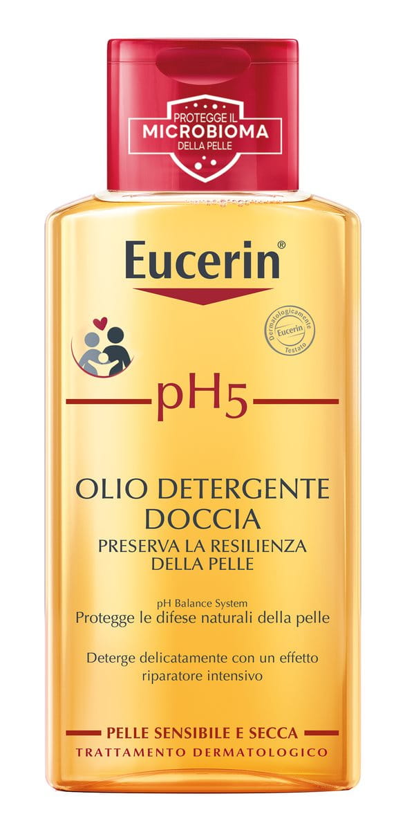 La pelle sensibile ha bisogno di una detersione delicata per resistere agli stress quotidiani. Proteggi e idrata la tua pelle con Eucerin pH5 Olio Detergente Doccia per un nuovo benessere sulla pelle. pH5 Olio Detergente Doccia con il 53% di oli naturali e Dexpantenolo deterge delicatamente e rispetta il microbiota della pelle.